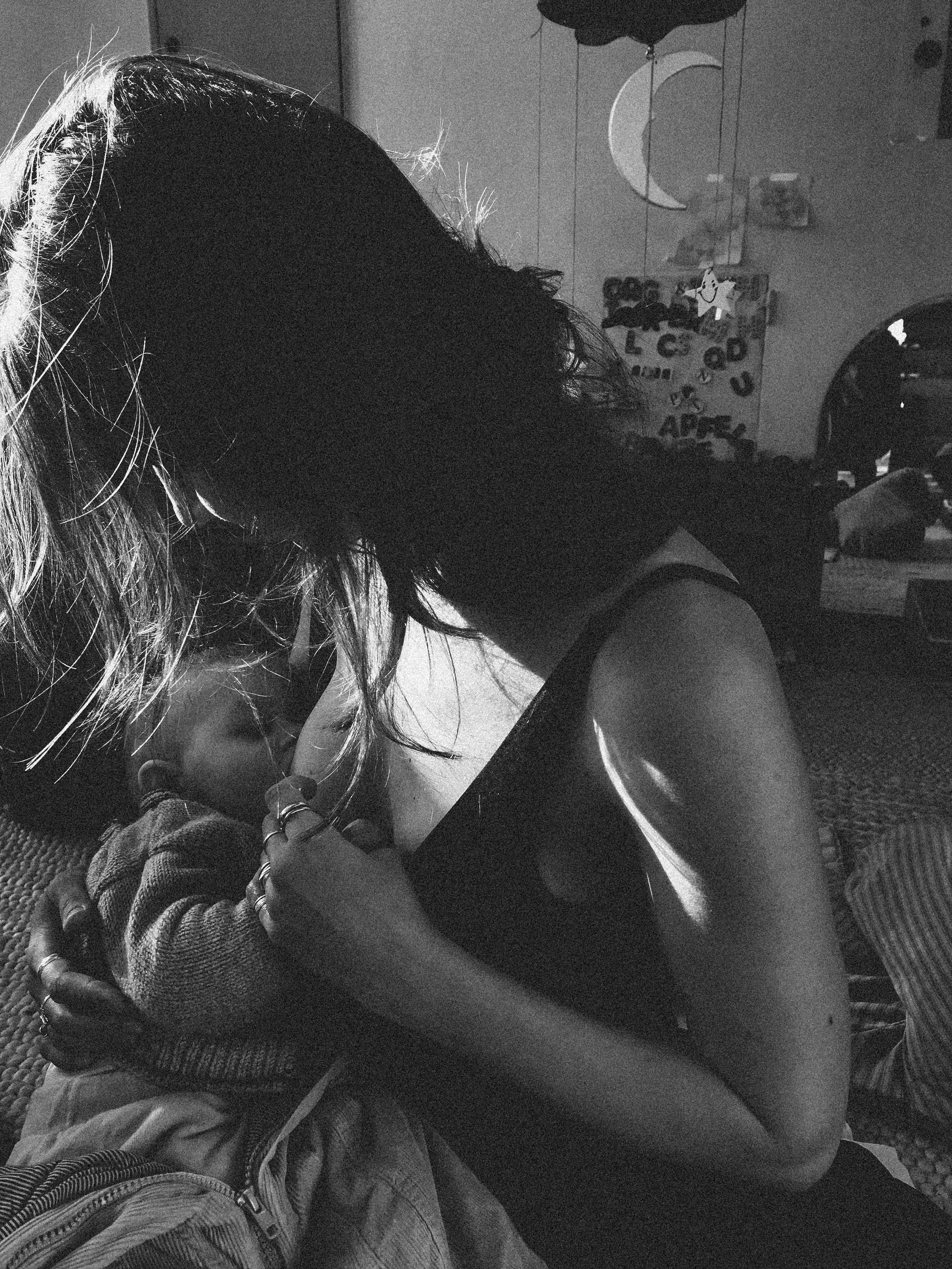 My favourite breastfeeding moments are in the living room, in our apartment in Vienna, when the sun shines directly into the room and all the members of our family are in the same space going about their weekend day. We have no real plans and time is allowed to move slowly. We enjoy listening to music and the sweet sounds of my elder son, Theo, playing.